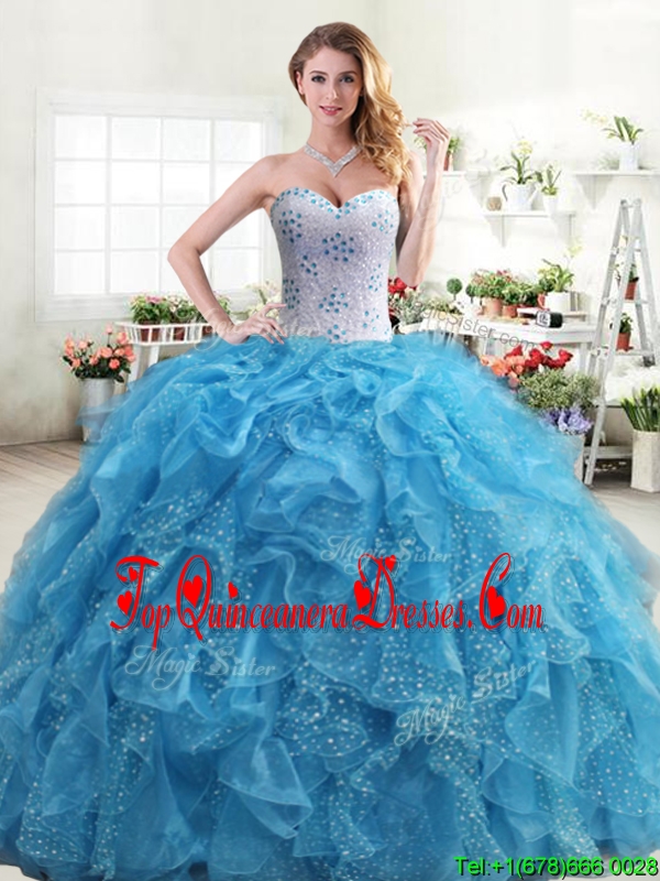 Exquisite Beaded and Ruffled Quinceanera Dress in Aqua Blue