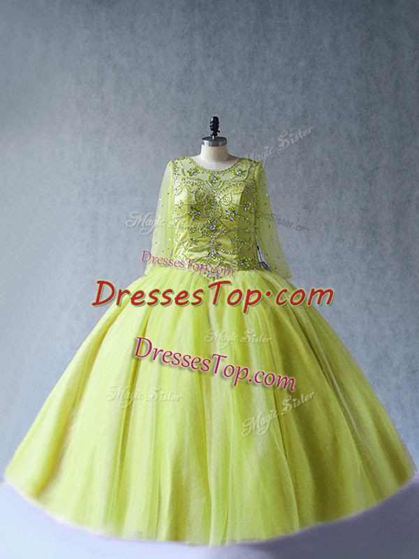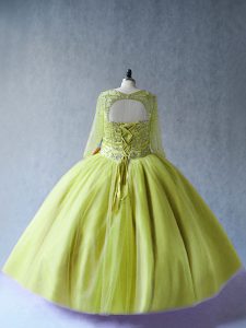 Exquisite Beading Quinceanera Gown Yellow Green Lace Up Long Sleeves Floor Length