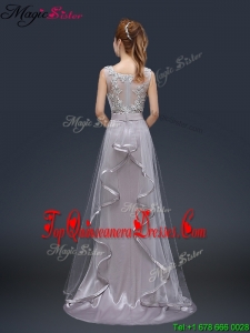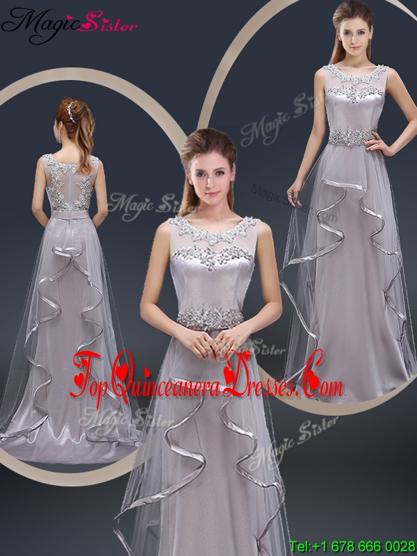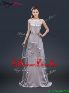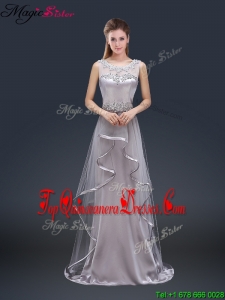 Exquisite Brush Train Scoop 2016 Dama Dresses with Appliques