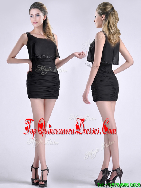 Exquisite Column Scoop Black Dama Dress with Appliques and Ruching