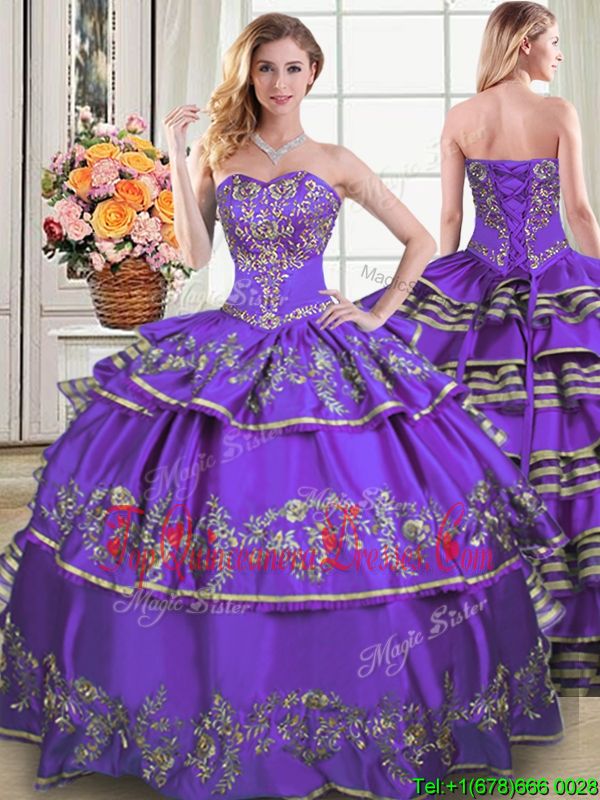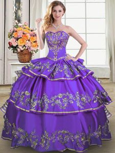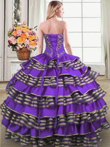 Exquisite Eggplant Purple Lace Up Sweet 16 Dresses Beading and Embroidery and Ruffled Layers Sleeveless Floor Length