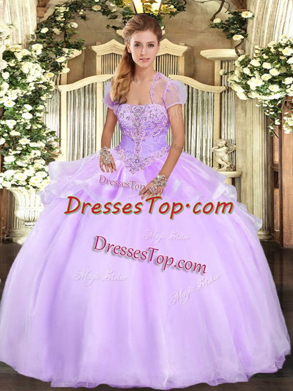 Exquisite Floor Length Lavender 15 Quinceanera Dress Organza Sleeveless Appliques