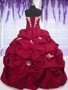 Exquisite Fuchsia Lace Up Strapless Appliques and Pick Ups Sweet 16 Quinceanera Dress Taffeta Sleeveless