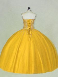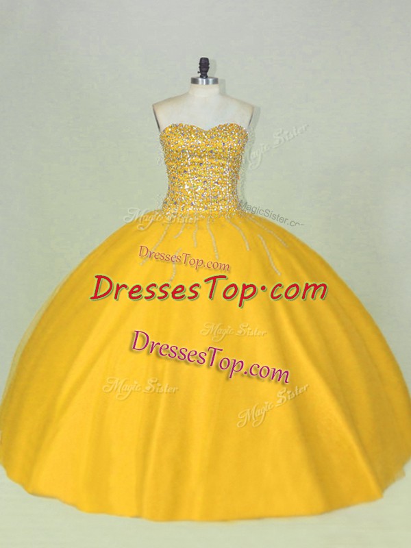 Exquisite Gold Sleeveless Beading Floor Length Vestidos de Quinceanera