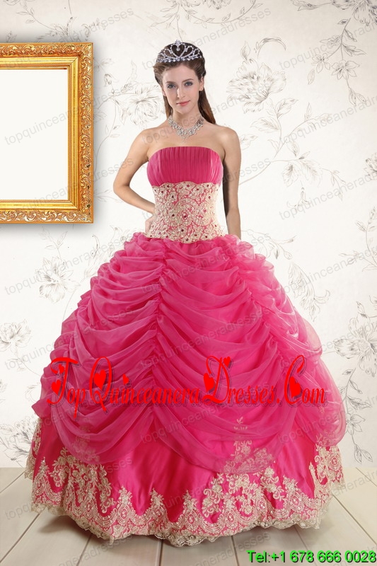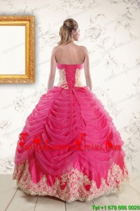 Exquisite Lace Appliques Hot Pink Quinceanera Gowns for 2015