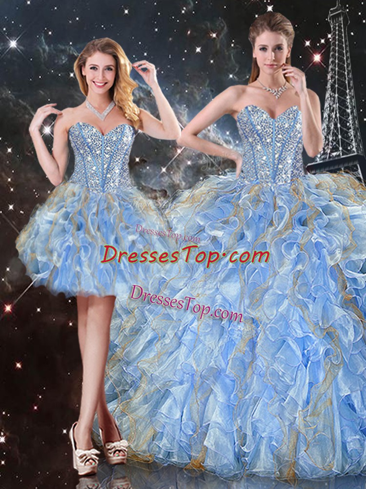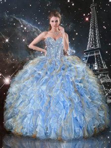 Exquisite Light Blue Sleeveless Organza Lace Up Sweet 16 Dress for Military Ball and Sweet 16 and Quinceanera