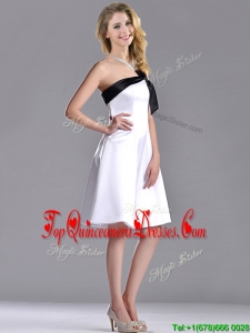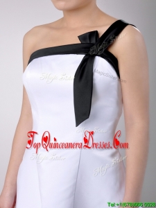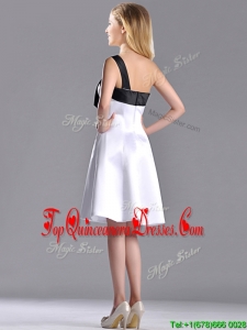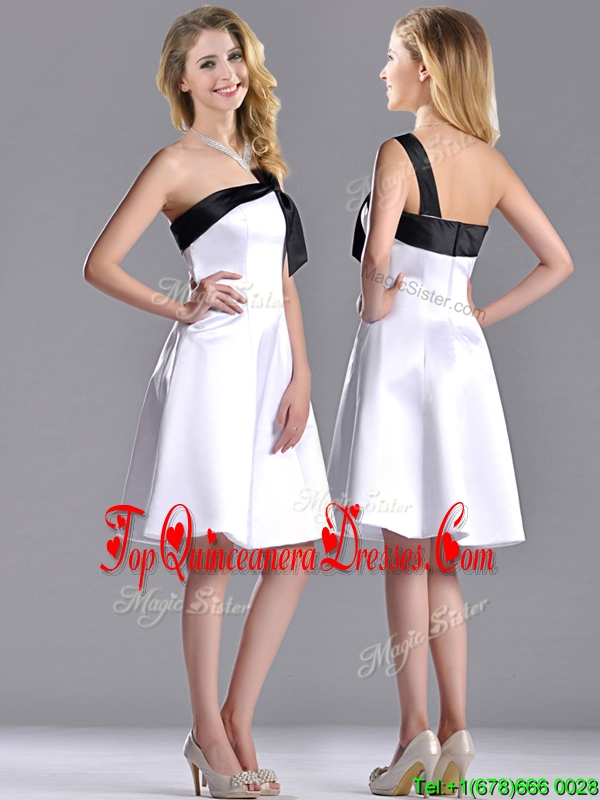 Exquisite One Shoulder Satin Short Dama Dress in White and Black