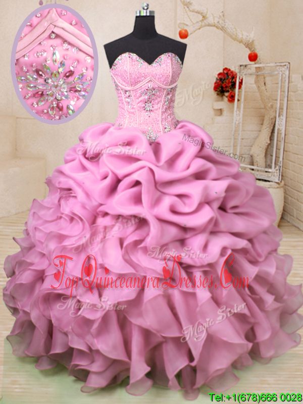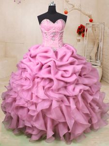 Exquisite Pick Ups Floor Length Ball Gowns Sleeveless Baby Pink Sweet 16 Dress Lace Up
