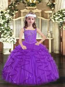 Exquisite Purple Straps Neckline Beading and Ruffles Child Pageant Dress Sleeveless Lace Up