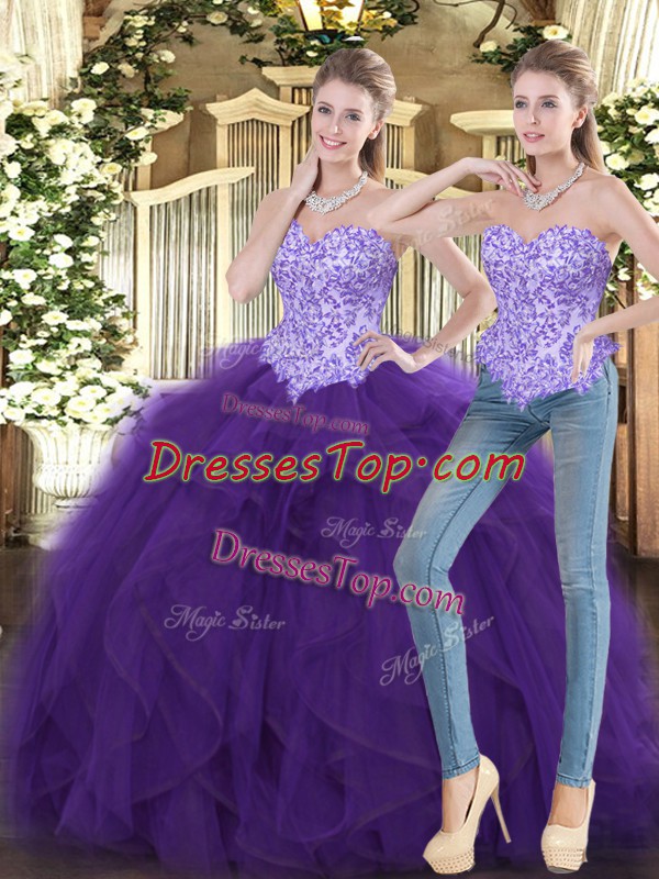 Exquisite Purple Sweetheart Lace Up Beading and Ruffles Quinceanera Gowns Sleeveless
