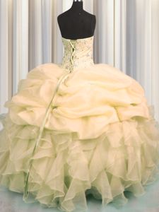 Exquisite Rolling Flowers Baby Blue Quinceanera Gown Military Ball and Sweet 16 and Quinceanera and For with Beading and Pick Ups Sweetheart Sleeveless Brush Train Lace Up