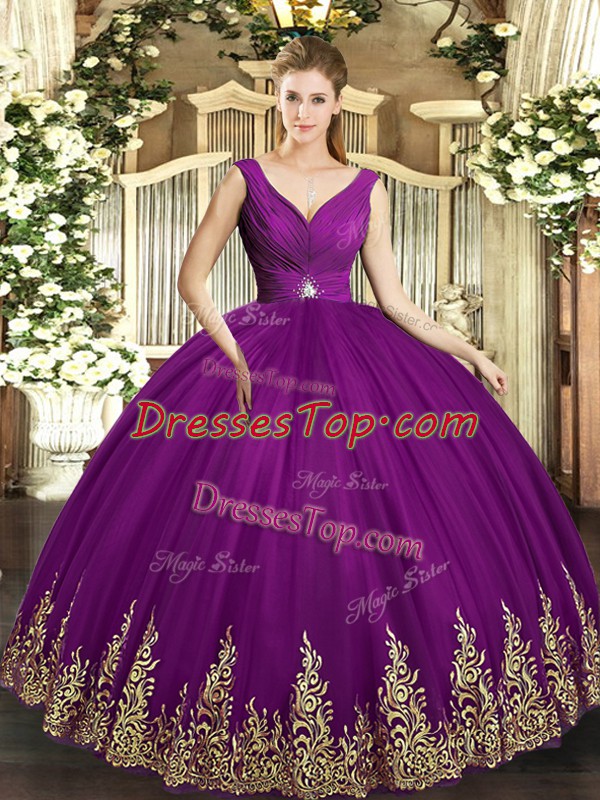Exquisite Sleeveless Beading and Appliques and Ruching Backless Quinceanera Gowns