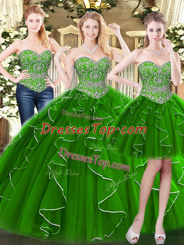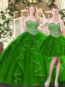 Exquisite Sleeveless Beading and Ruffles Lace Up Quince Ball Gowns