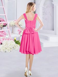 Exquisite Sleeveless Chiffon Knee Length Zipper Quinceanera Court Dresses in Hot Pink for with Ruching and Belt