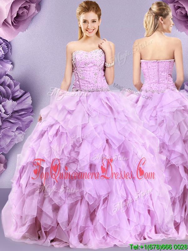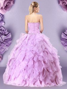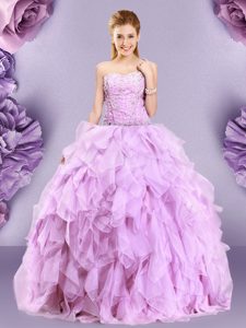 Exquisite Sweetheart Sleeveless 15th Birthday Dress Floor Length Beading and Ruffles Lilac Tulle