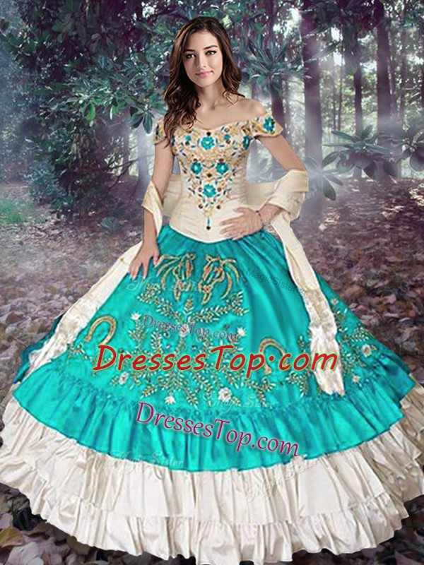 Extravagant Elastic Woven Satin Sleeveless Floor Length Quinceanera Gowns and Embroidery and Ruffled Layers