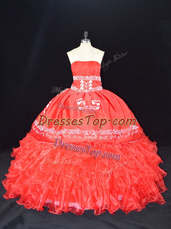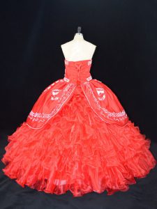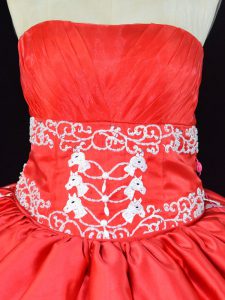 Extravagant Floor Length Red Quinceanera Dress Strapless Sleeveless Lace Up