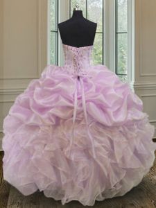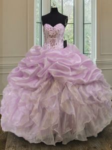 Extravagant Green Ball Gowns Sweetheart Sleeveless Organza Floor Length Lace Up Beading and Ruffles Sweet 16 Dress