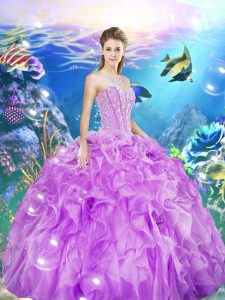 Extravagant Lilac Ball Gowns Beading and Ruffles Quinceanera Gown Lace Up Organza Sleeveless Floor Length