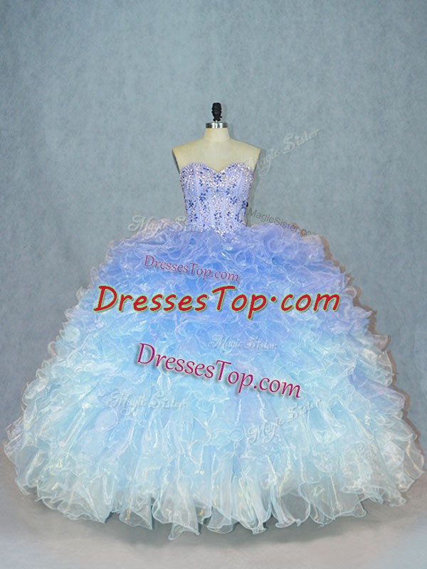 Extravagant Multi-color Organza Lace Up Sweetheart Sleeveless Sweet 16 Dress Beading and Ruffles