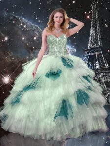 Extravagant Multi-color Three Pieces Sweetheart Sleeveless Tulle Floor Length Lace Up Beading and Ruffled Layers and Sequins Quinceanera Gown