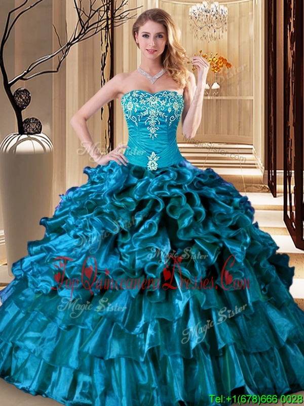 Extravagant Organza Sleeveless Floor Length Quinceanera Dresses and Embroidery and Ruffles