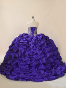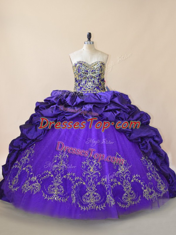 Extravagant Purple Ball Gowns Embroidery and Pick Ups 15th Birthday Dress Lace Up Satin and Organza Sleeveless