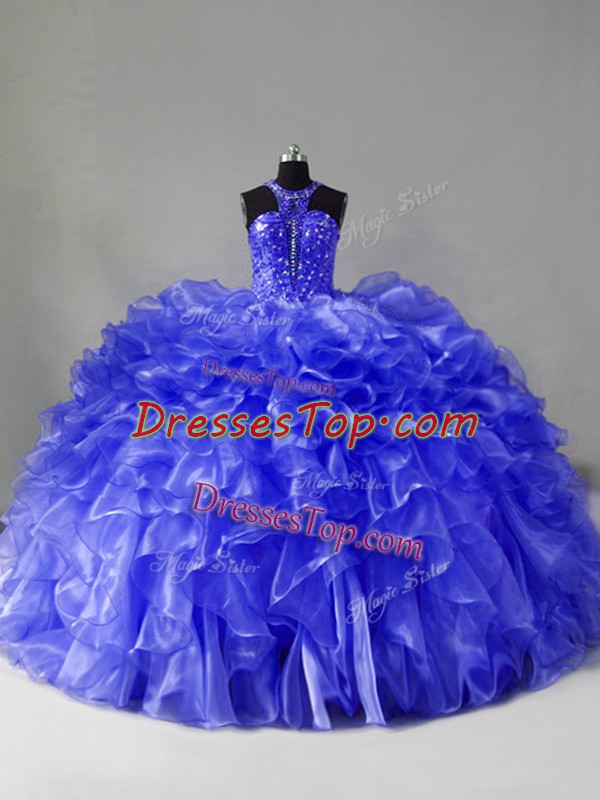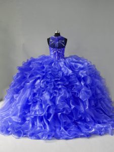 Extravagant Sleeveless Brush Train Zipper Beading and Ruffles Quinceanera Gowns