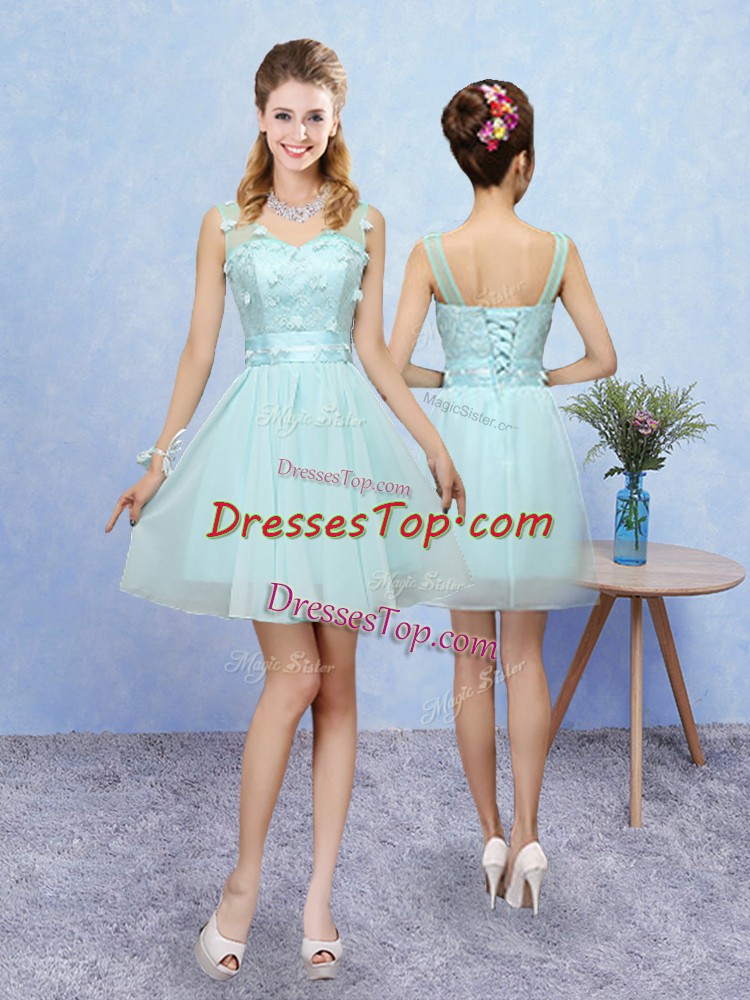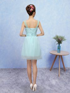 Extravagant Straps Sleeveless Lace Up Dama Dress for Quinceanera Aqua Blue Tulle