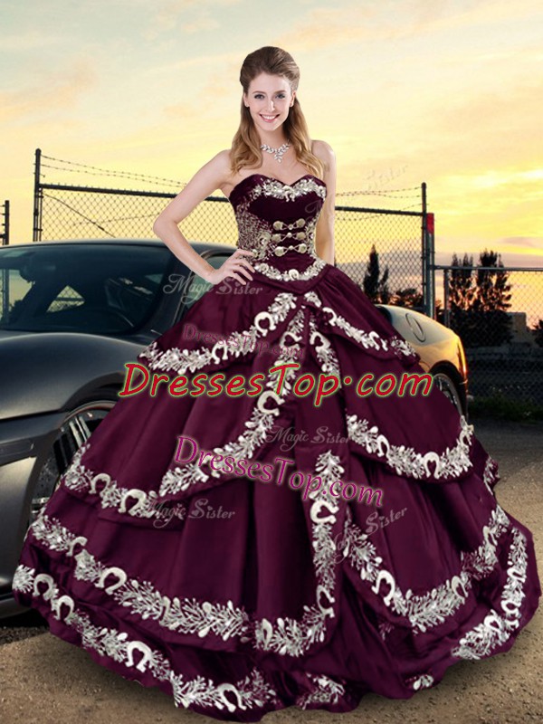 Extravagant Sweetheart Sleeveless Lace Up Quinceanera Gown Purple Satin