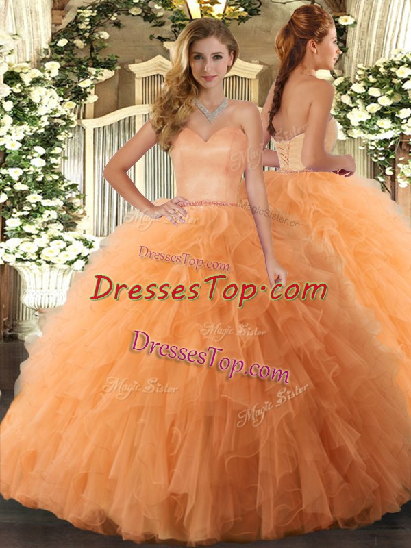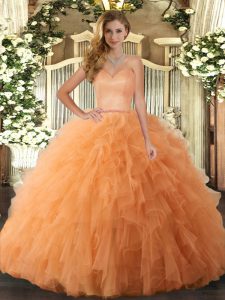 Extravagant Sweetheart Sleeveless Tulle Quince Ball Gowns Ruffles Lace Up