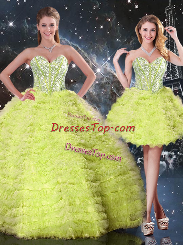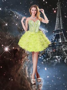 Extravagant Tulle Sweetheart Sleeveless Lace Up Beading and Ruffles Sweet 16 Quinceanera Dress in Yellow Green