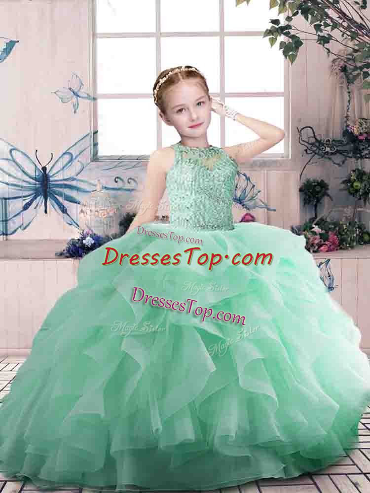 Eye-catching Apple Green Sleeveless Beading and Ruffles Floor Length Child Pageant Dress