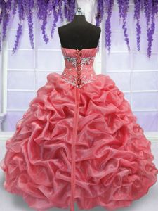 Eye-catching Beading Quinceanera Dress Watermelon Red and Coral Red Lace Up Sleeveless Floor Length
