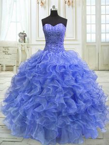 Eye-catching Blue Sleeveless Beading and Ruffles Floor Length Ball Gown Prom Dress