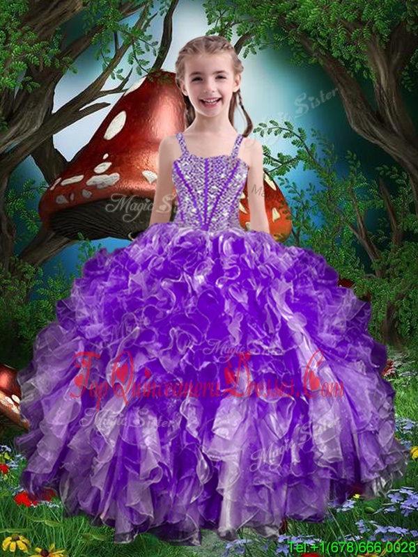 Eye-catching Floor Length Ball Gowns Sleeveless Eggplant Purple Little Girl Pageant Gowns Lace Up