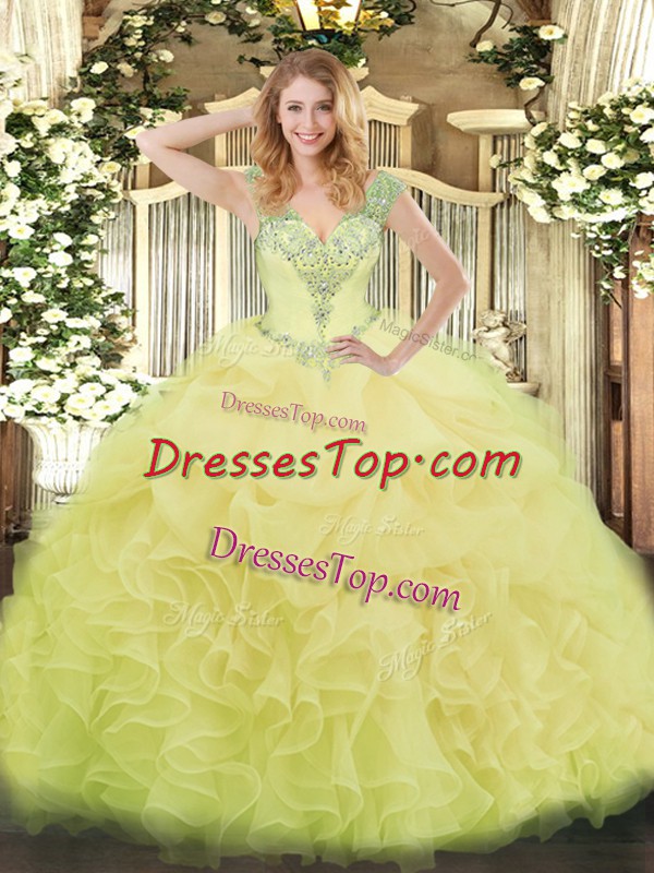 Eye-catching Floor Length Ball Gowns Sleeveless Yellow 15th Birthday Dress Lace Up