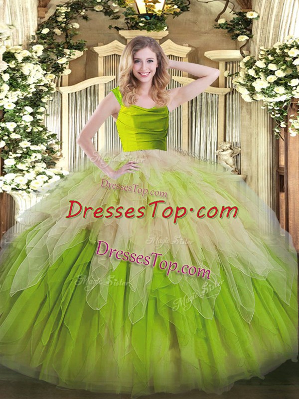 Eye-catching Floor Length Yellow Green Quinceanera Dress Organza Sleeveless Lace and Ruffles