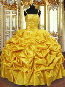 Eye-catching Gold Sleeveless Floor Length Beading and Pick Ups Lace Up Ball Gown Prom Dress