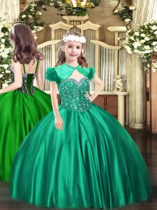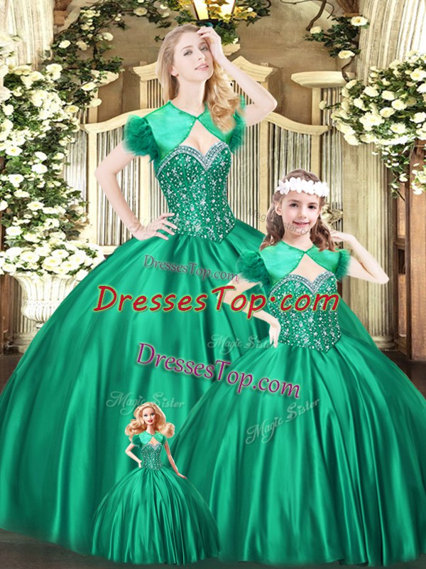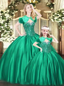 Eye-catching Green Lace Up Ball Gown Prom Dress Beading Sleeveless Floor Length