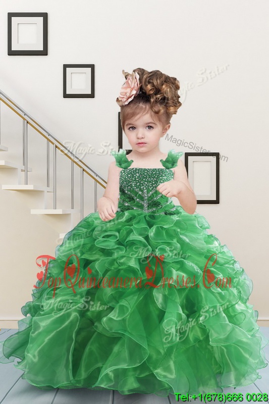 Eye-catching Green Sleeveless Floor Length Beading and Ruffles Lace Up Pageant Dress Womens