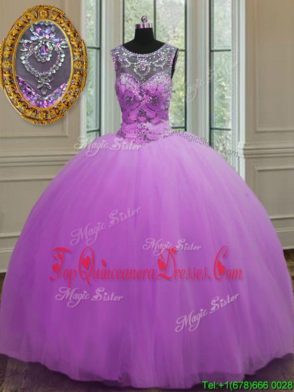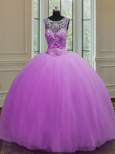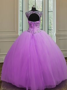 Eye-catching Halter Top Floor Length Ball Gowns Sleeveless Purple Quinceanera Dress Lace Up