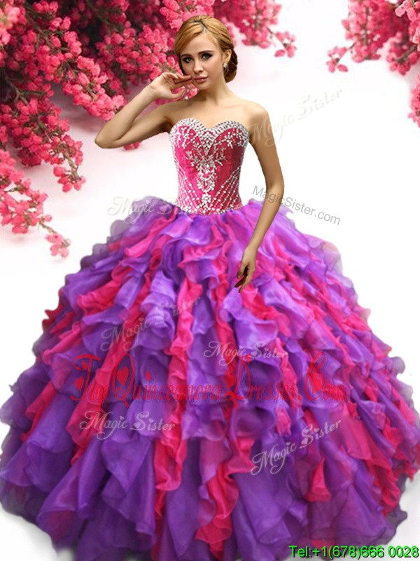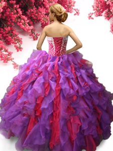 Eye-catching Multi-color Ball Gowns Sweetheart Sleeveless Organza Floor Length Lace Up Ruffles Ball Gown Prom Dress