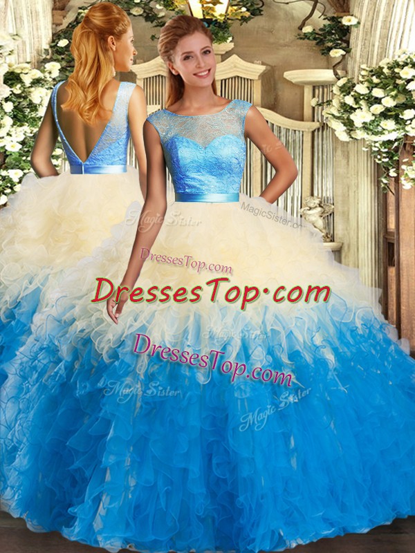 Eye-catching Multi-color Scoop Backless Lace and Ruffles Sweet 16 Dress Sleeveless