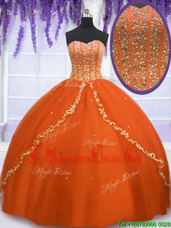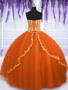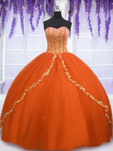 Eye-catching Orange Red Ball Gowns Beading Quinceanera Gown Lace Up Tulle Sleeveless Floor Length