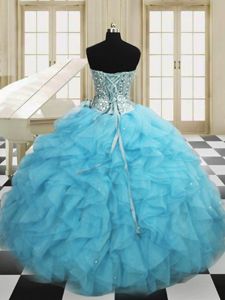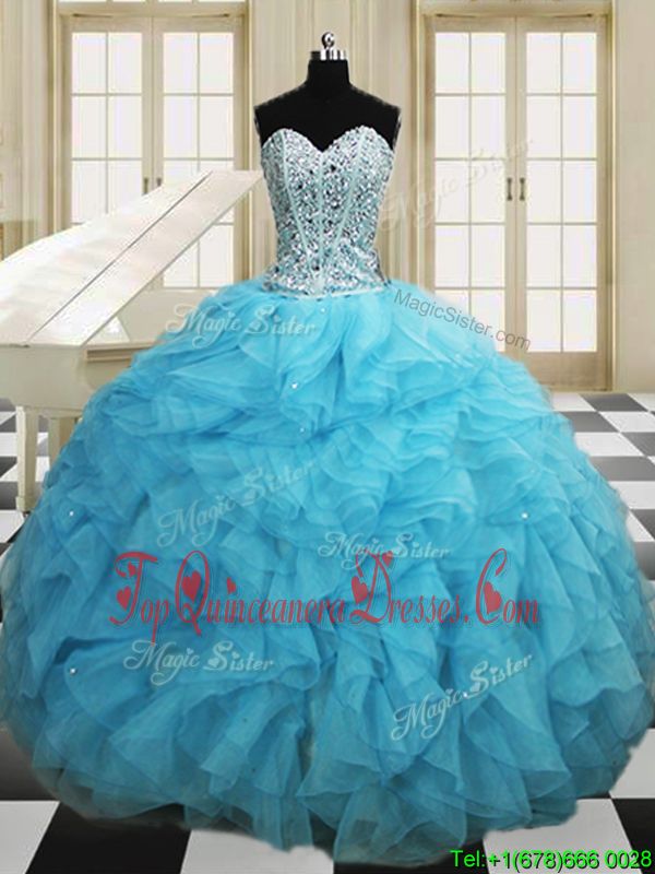 Eye-catching Organza Sleeveless Floor Length Sweet 16 Quinceanera Dress and Beading and Ruffles