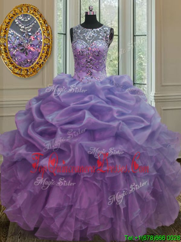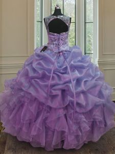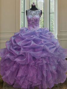 Eye-catching Pick Ups Scoop Sleeveless Lace Up Quinceanera Gown Fuchsia Organza