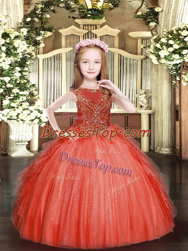 Eye-catching Red Scoop Zipper Beading and Ruffles Pageant Dress for Girls Sleeveless