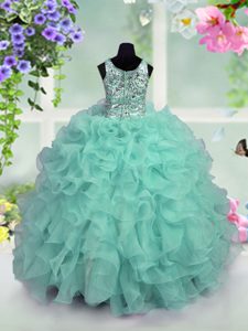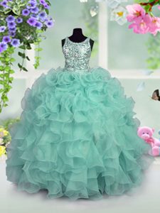 Eye-catching Scoop Ruffles and Sequins Pageant Dresses Turquoise Zipper Sleeveless Floor Length