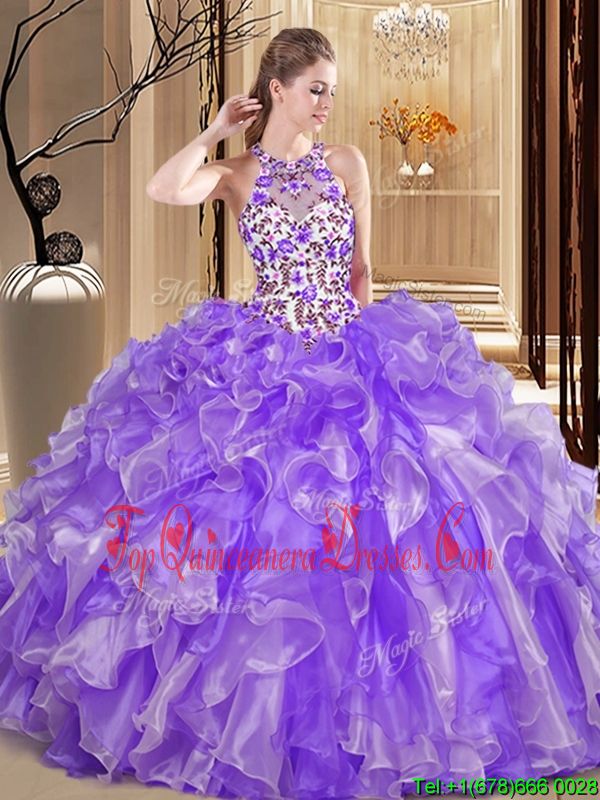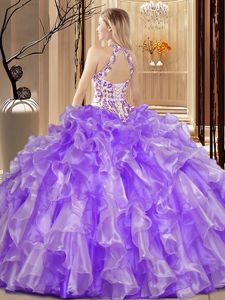 Eye-catching Scoop Sleeveless Organza Vestidos de Quinceanera Embroidery and Ruffles Lace Up